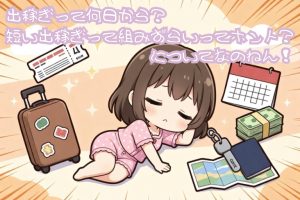 出稼ぎって期間を決めて働く働き方だから、まとまった日数のスケジュールを取れる人向けの働き方だよ!